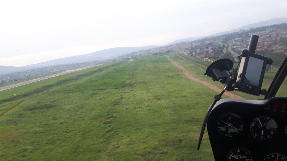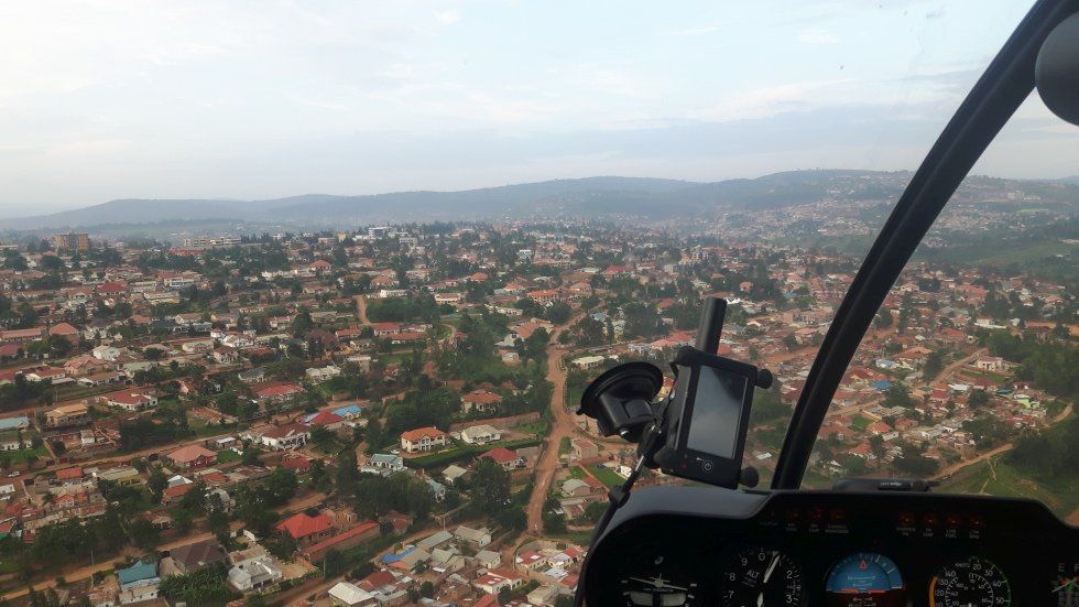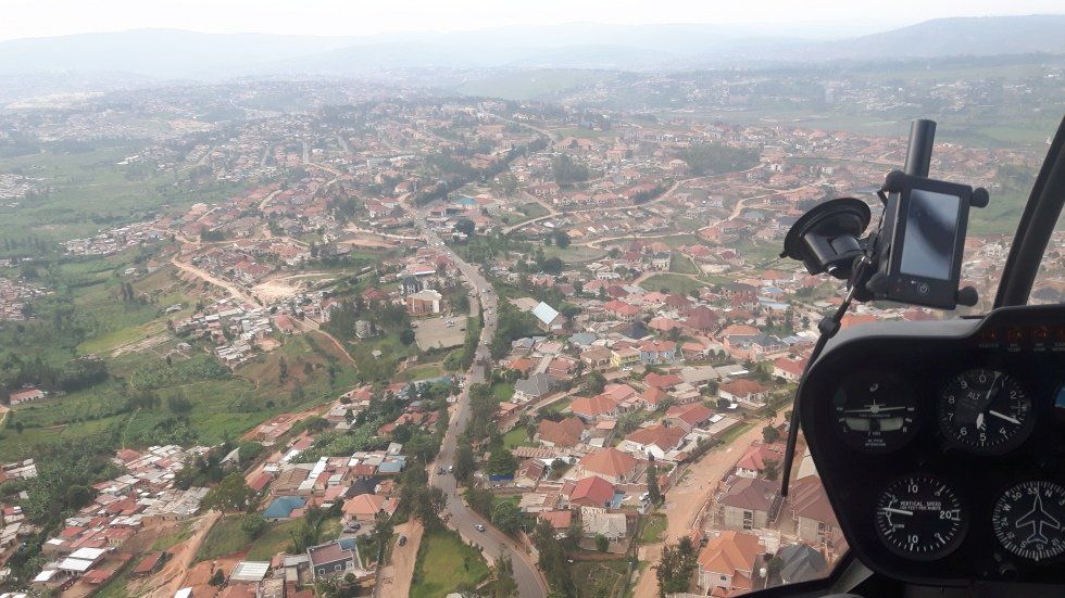 Wie ich erst später vom Fahrer zum Hotel erfahren habe, hätte es statt des Helikopterfluges auch die Möglichkeit gegeben, mit einem Wagen von Kigali zur Lodge zu fahren. Fahrtzeit nach seinen Angaben ungefähr dreieinhalb Stunden.